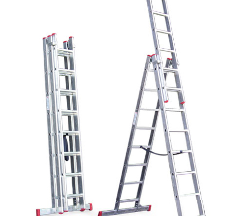 Üç parçalı A tipi üstüne sürgülü alüminyum merdivenler,