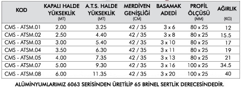 A tipi merdiven biçimlerinde ve A tipi üstüne sürgülü olarak kullanılabilir.
