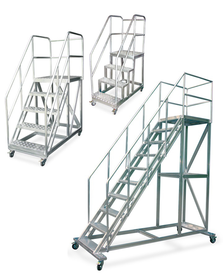 Kullanıcının ihtiyacı göz önünde tutularak her türlü geniş basamaklı ve korkuluklu alüminyum merdiven ve çalışma platformları firmamız tarafından projelerinize uygun olarak üretilmektedir.