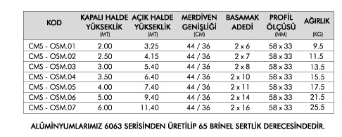 İçiçe sürgülü olarak 2 parçadan oluşan; hafif, pratik, güvenilir olarak dış cephe ve çatıya çıkışlarda v.b. gibi yerlerde kullanıma uygundur.