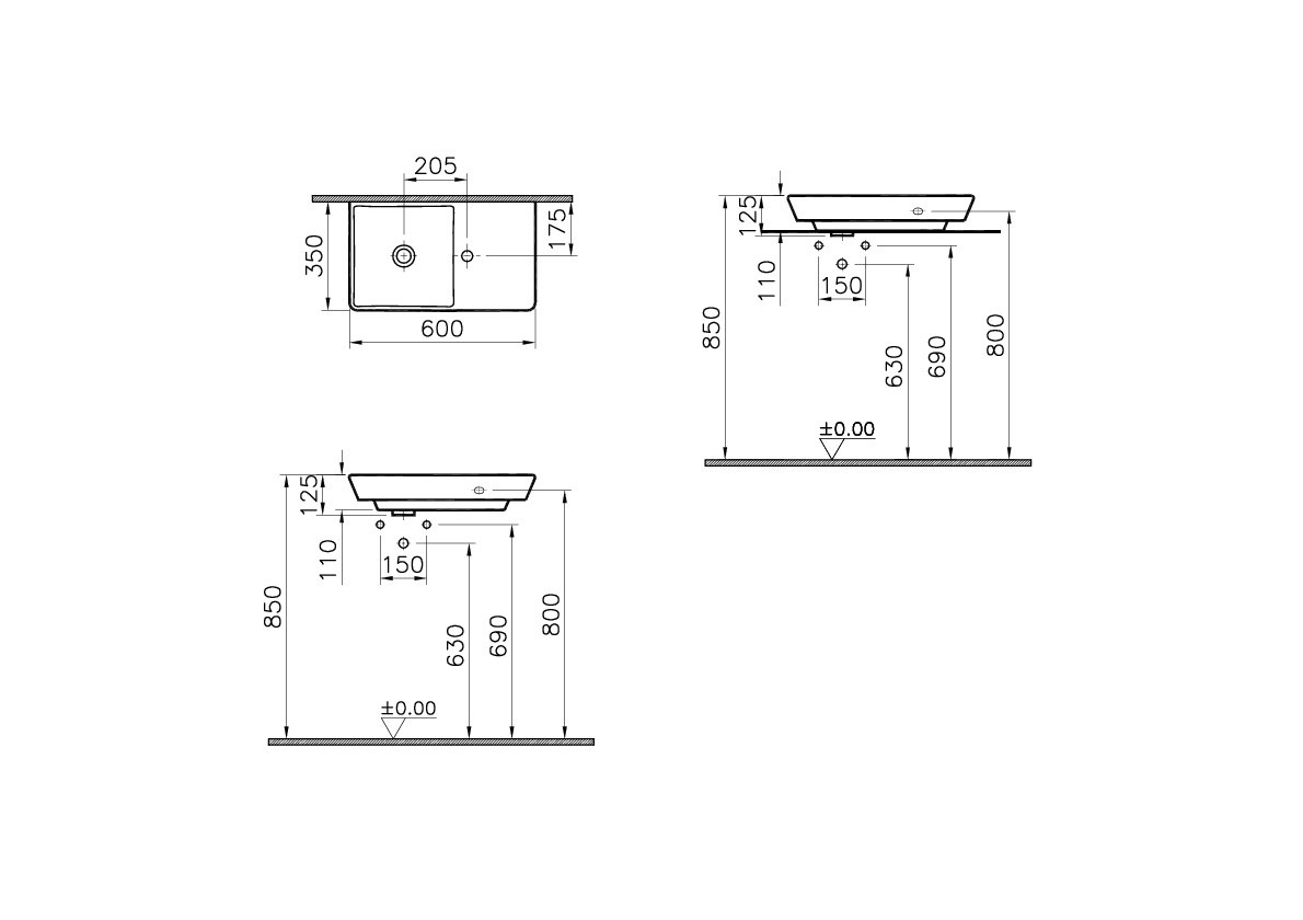Armatür delikli, su taşma deliksiz