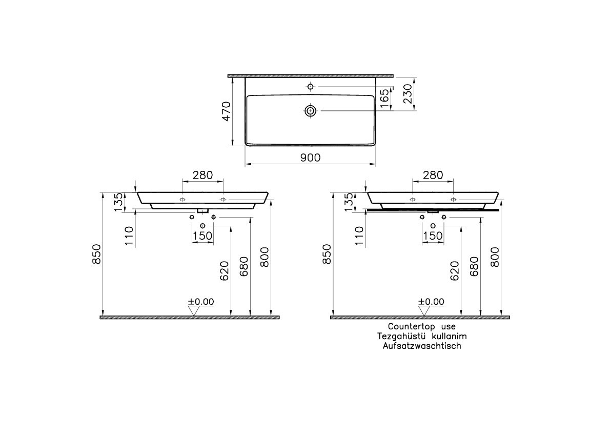 Orta armatür delikli, su taşma delikli